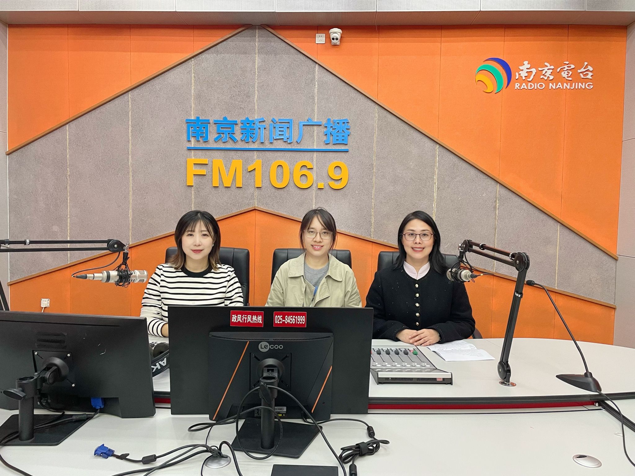 首先,许芸主任带领同学们来到南京广电集团,参加一场现场观摩会。标营社区孙琳书记和许芸主任受邀参加FM106.9南京新闻综合广播《区街议事厅》节目,通过广播直播的方式介绍标营社区“社志融合”的社区治理模式,让同学们对标营社区的治理和服务品牌有了一些了解。