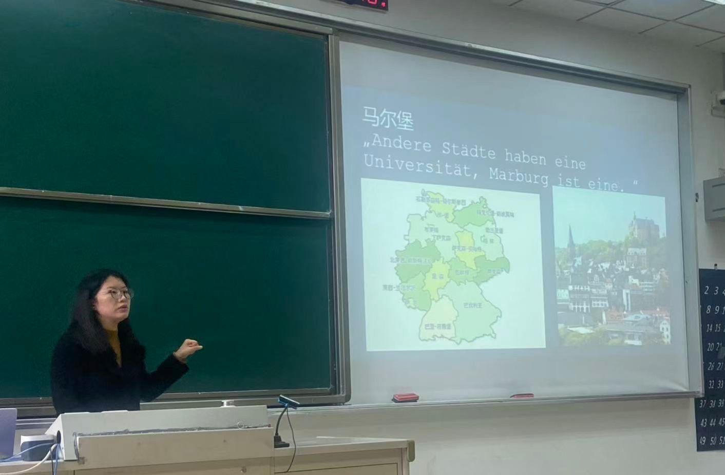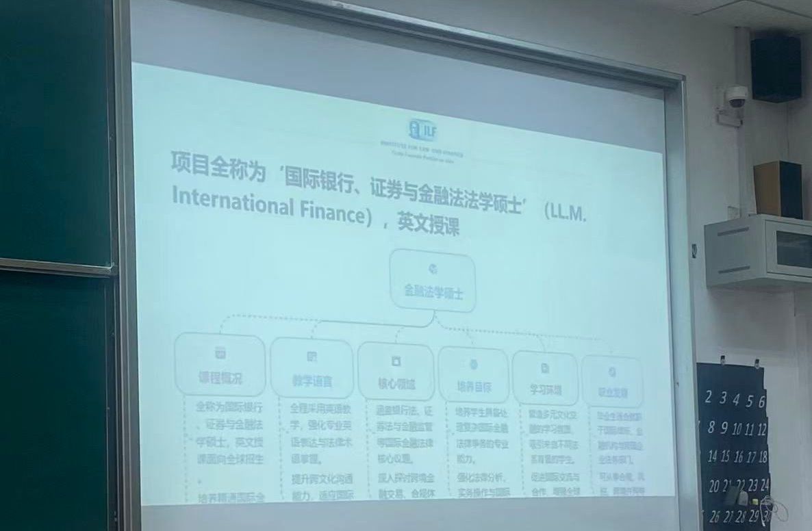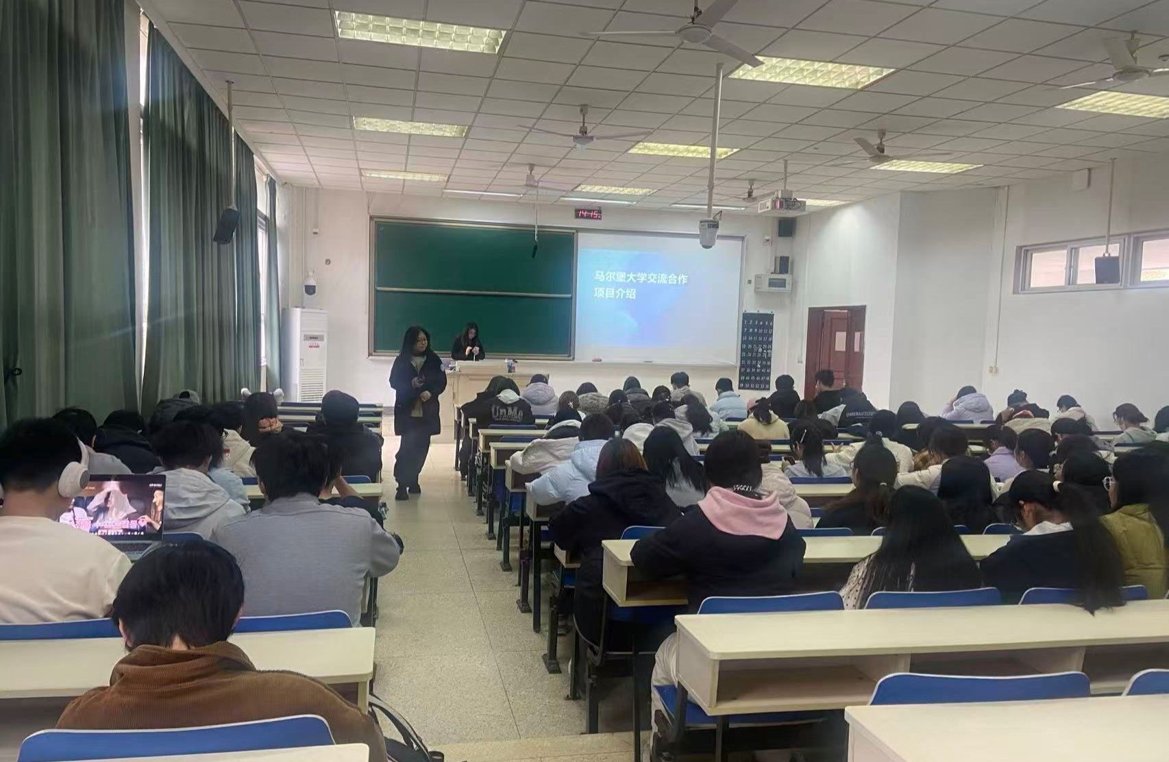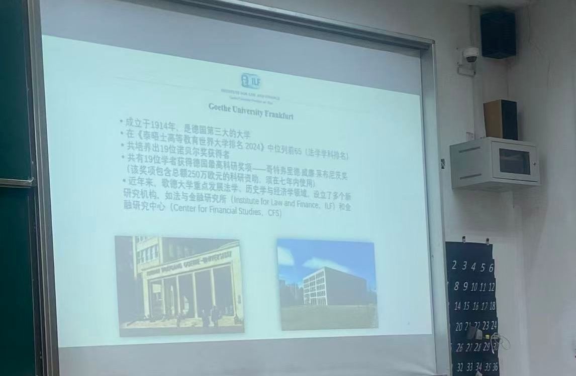 教师顾朱辰博士在德业楼101教室宣讲了两个国际交流项目。一个是德国马尔堡大学法学专业本科生交流项目,另一个是德国法兰克福大学法律与经济学院“国际银行、证券与金融法法学硕士”项目。马尔堡大学法学项目发端于2010年,至今已有15年,我校法学专业50多名本科生通过这个项目走出国门。法兰克福大学法学硕士项目今年签约,面向我校法学专业和经管类专业的本科四年级学生及在读研究生,每年招收5人。